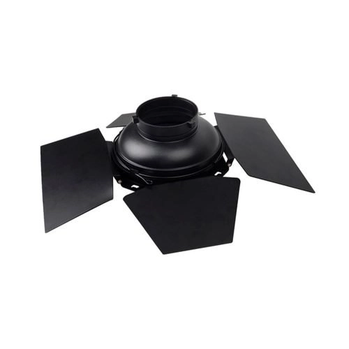 Los Barndoors utilizan una estructura de montaje a presión, que hace que la instalación y el desmontaje sean rápidos y cómodos. Además de los anillos adaptadores especiales, también se pueden colocar en la parte delantera de un reflector estándar de 7 pulgadas, Fresnel y otros accesorios compatibles.