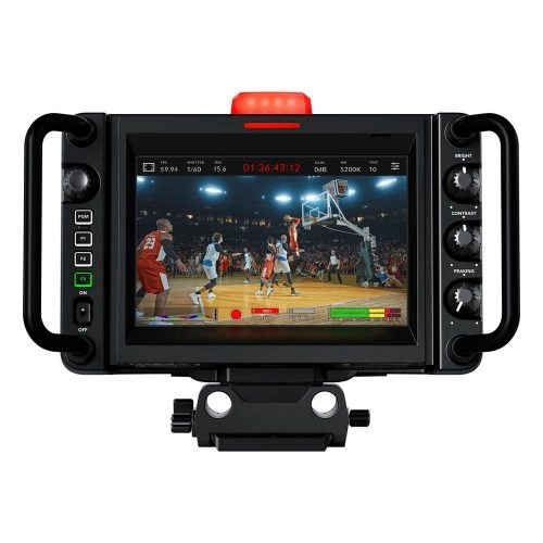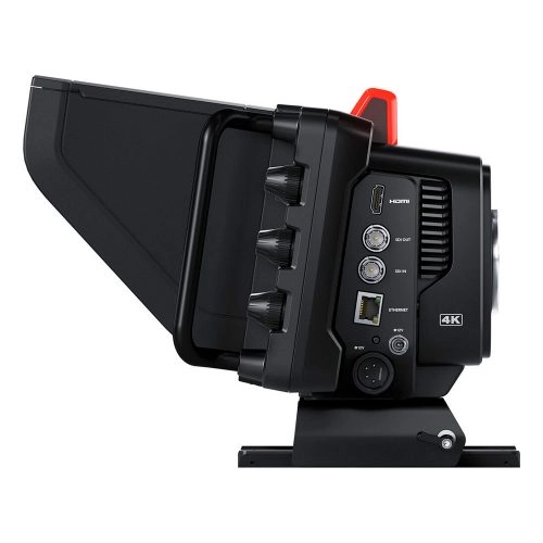 Diseñada para producciones en vivo, permite grabar archivos RAW en discos USB y emplearse en cualquier circunstancia usando un trípode. Su pantalla táctil incorporada incluye manijas el lateral y controles físicos que hacen más sencillo el seguimiento de los planos y el uso de la cámara durante largos períodos.
