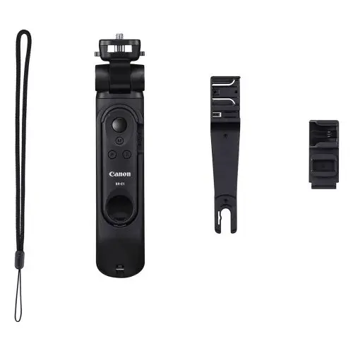 La empuñadura para trípode se suministra con el mando a distancia inalámbrico BR-E1 de Canon, que controla a distancia el obturador, el zoom, la grabación de vídeo y el enfoque automático de la cámara*.