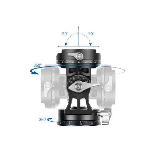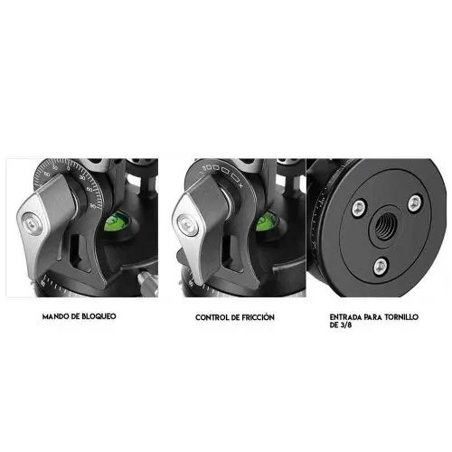 Gracias a su doble control de rotación de 360º independiente y bloqueable podrás mover la cámara / objetivo a la posición niveladas más conveniente.